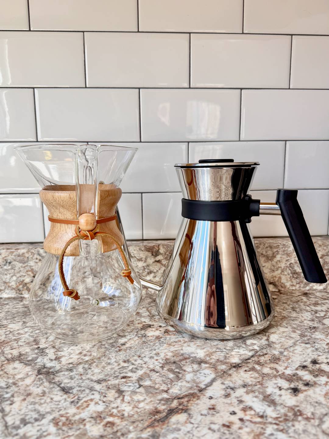 I can’t start my mornings without a cup. I’ve been making pour over coffee in my Chemex for over 11 years now… and I finally cracked it on Wednesday. Totally my fault. I had it sitting too close to the burner. Oops!